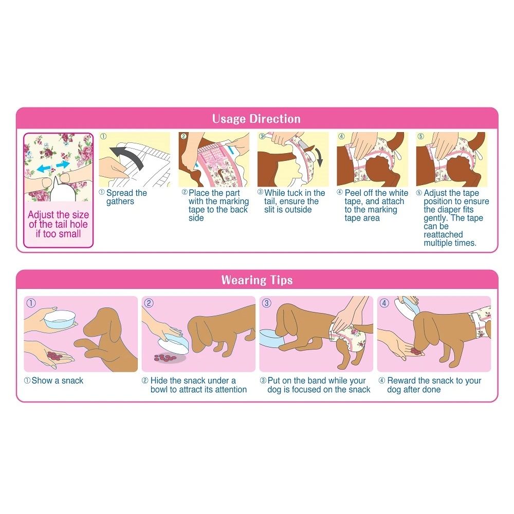 The cool fashionable design diaper is easy to wear on and can hold up 6 hours of urine, thus save you the trouble of solving toiletry issues of fur kid, while the soft air-through sheet prevent stuffiness and comfort for your dog with smooth and soft feeling.